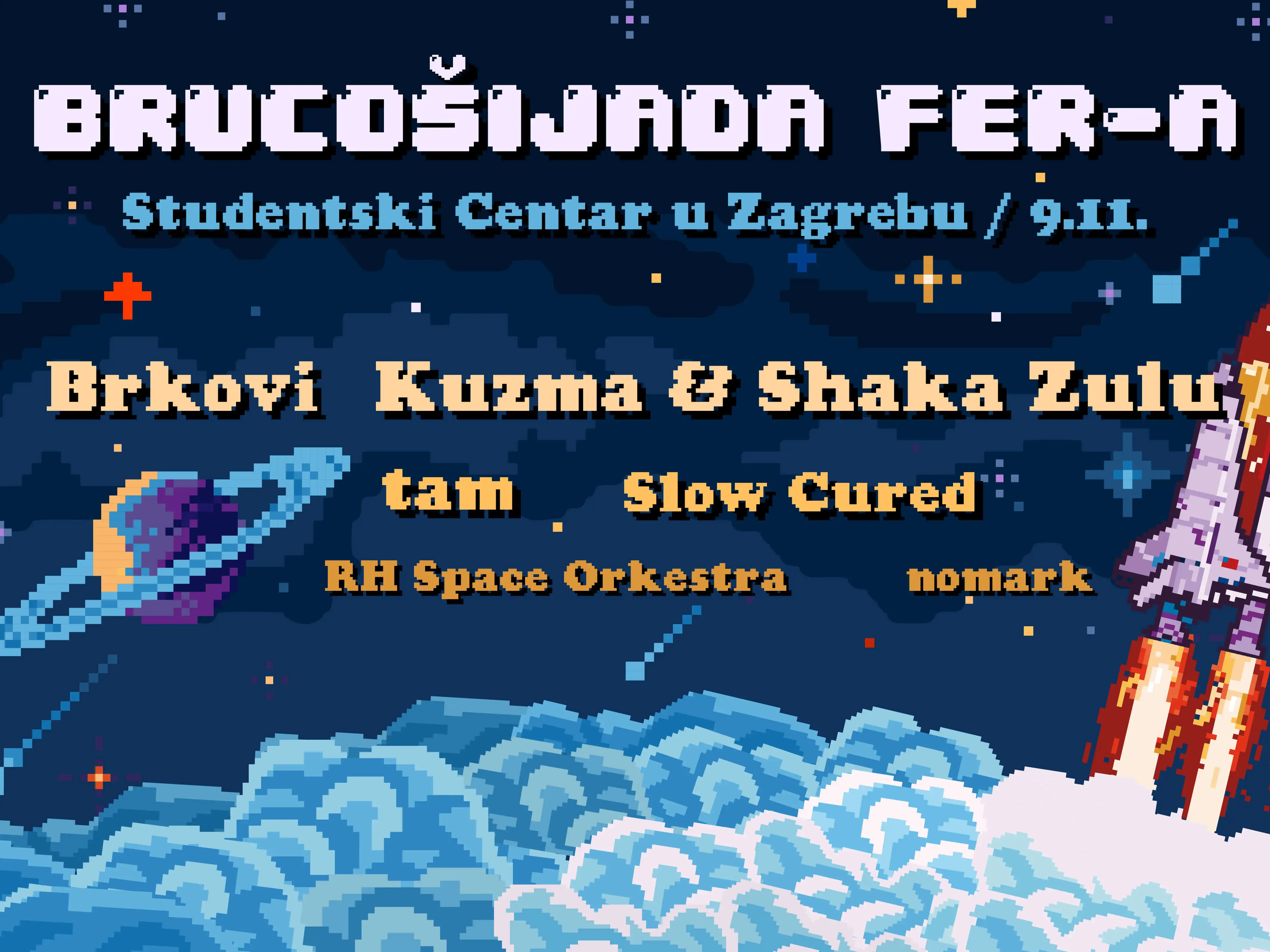 This project was about creating a visual identity for Brucošijada FER-a, a one-day festival held for FER's freshmen every November. The design features pixel art which was a huge challenge, but proved to be very rewarding when done right.